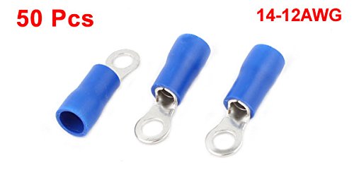 uxcell 丸型端子 圧着端子 絶縁電線コネクタリング リングホール 3.5-4S 14-12AWG 50個入り
