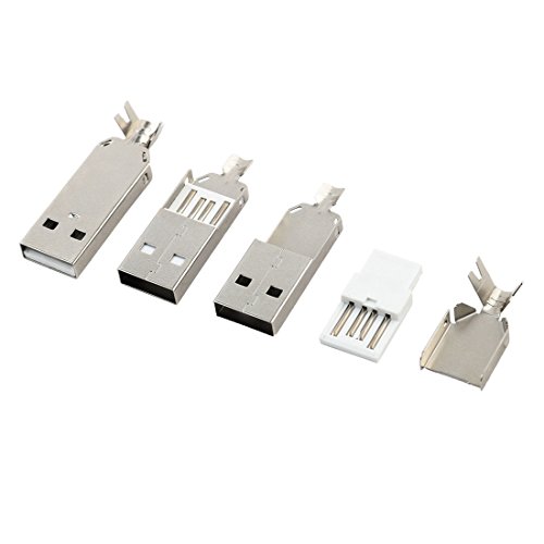 uxcell USBオスコネクタ 金属 プラスチック ホワイト シルバートーン USBアダプタ PCBマウント 15セット入り