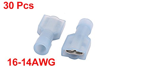 uxcell 絶縁圧着端子 ナイロン製 ライトブルー 16-14AMGワイヤ 30個入り