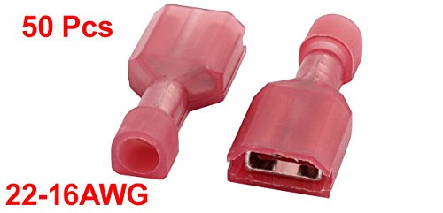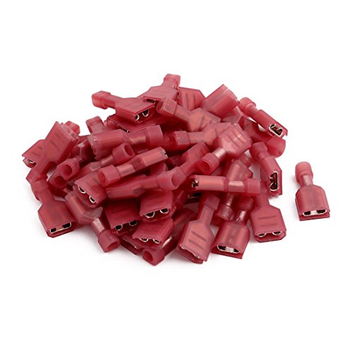 uxcell 絶縁圧着端子 ナイロン製 レッド 22-16AMGワイヤ 50個入り
