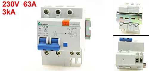 uxcell サーキットブレーカー 回路保護部品 遮断器 DZ47LE-63 C63 230V DINレール付き