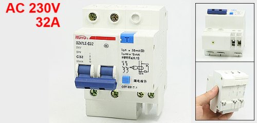 uxcell 電路ブレーカー サーキットブレーカ 安全ブレーカー 小型漏電ブレーカ 遮断器 回路保護部品 AC230V 32A 2極 プラスチック 電気部品 リーク保護