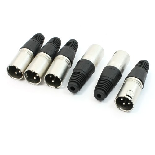 uxcell オーディオコネクタ マイクスピーカアンプ用 65mm 3Pオス XLR プラグブラック 6個入り