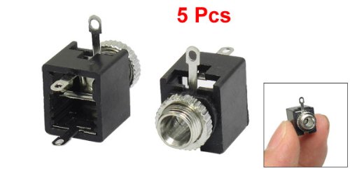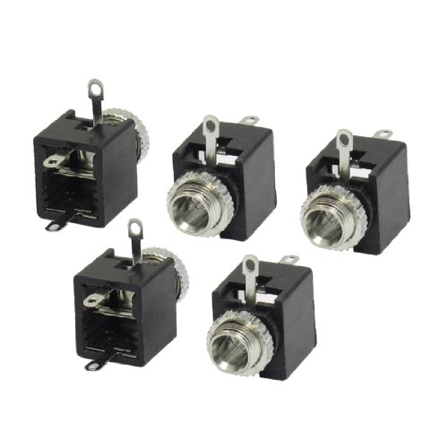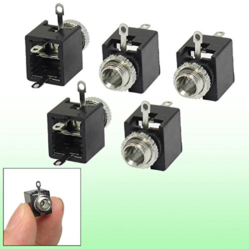 uxcell 板実装モノラルジャック 金属 プラスチック ブラック シルバートーン 5個入り