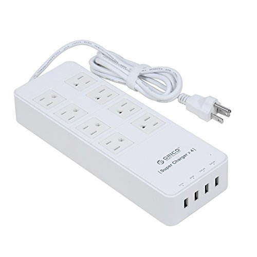 - ボックスには何があり、1×オリコ4 USBスーパーチャージャー、1×内蔵5フィート電源コード、1×ユーザーズマニュアル、1xサービスカードと8サージ保護ACアウトレット。