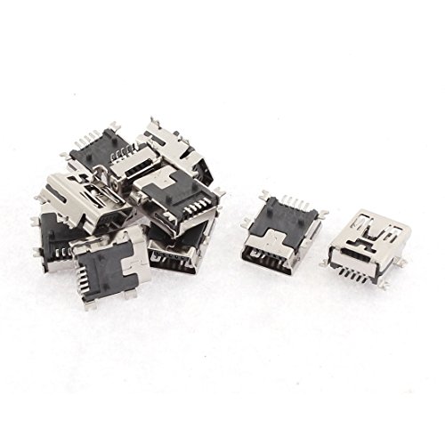 uxcell マイクロ USB コネクター タイプ B 5ターミナル シルバートーン 10個入り