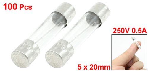 uxcell 100個セット グラス チューブ ヒューズ ファスト溶接線タイプ 250V 0.5Amp 5 x 20mm