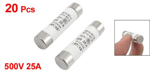 uxcell 速断ヒューズ シリンダーキャップヒューズ 10x38mm アルミ セラミック 電子部品 ホワイト RO15シリーズ 500V 25A 109g 20本