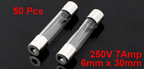 uxcell ガラス管ヒューズ クイックブロー 低遮断容量 速断 7A 250V 6 x 30mm 50個