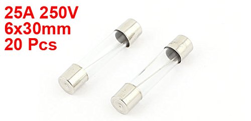 uxcell クイックブローガラス管ヒューズ 25A 250V シルバートーン クリア 6x30mm 20個入り