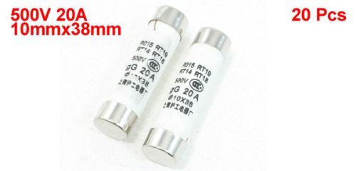 uxcell 500V 20A 10x38mm 円筒 セラミック管ヒューズリンク R015 RT14 RT18 RT19 20本入り