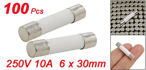 uxcell セラミック ヒューズ6x30mm 250V 10A シリンダー 接触 キャップ 100本