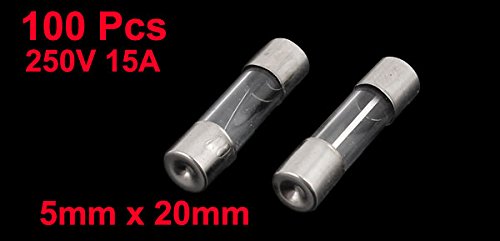 uxcell ガラス管ヒューズ 金属 速断 5mm x 20mm 250V 15A 100個入り