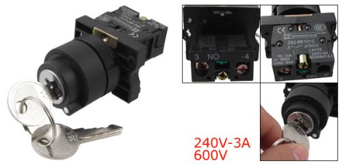 uxcell キーロックロータリースイッチ 2キー付き 2ポジション 600V 10A ブラック 1 NO N/O XB2-EG21