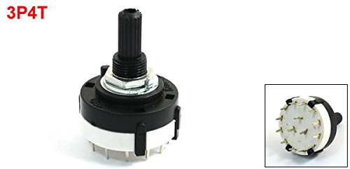 uxcell ロータリースイッチ 3P4T 3ポール 4ポジション 6mmシャフト直径
