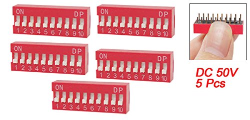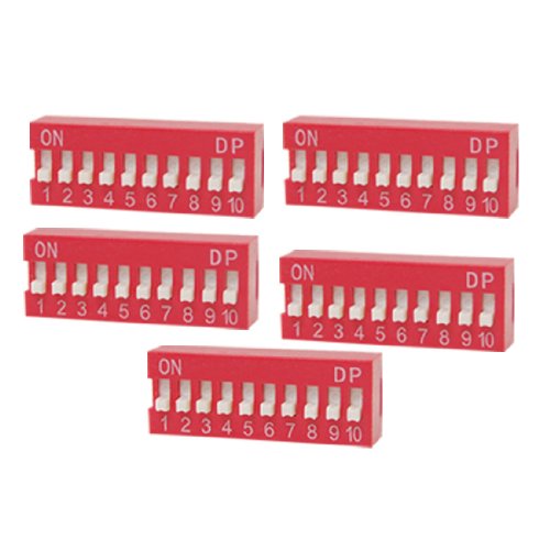 uxcell DIPスイッチ 10ウェイ スライドスタイル 2.54mmピッチ レッド・スイッチ 5個入り