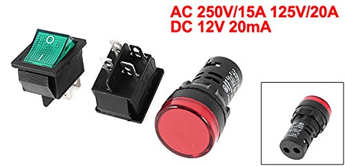 uxcell グリーンロッカースイッチ 2つ KCD4 DPST レッドパイロットLEDランプ 1つ AD16-22D/S DC 12V 3個入り