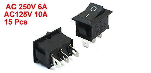 uxcell ロッカースイッチ 3ピン ブラック ヘッド 長方形 SPDT ON/OFF AC250V 6A AC125V 10A 15個入