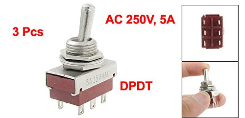 uxcell トグルスイッチ メテル 基板 AC 250V 5A オン/オン 2P2T DPDT 3個入り