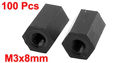 uxcell 六角スタンドオフスペーサー M3x8mm メネジ ナイロン PCB柱 ねじナット ブラック100個