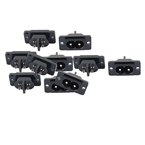 uxcell 電源インレット 2端子 C8タイプ PCBボード パネル取り付け オス AC 250V 10A 10個入り