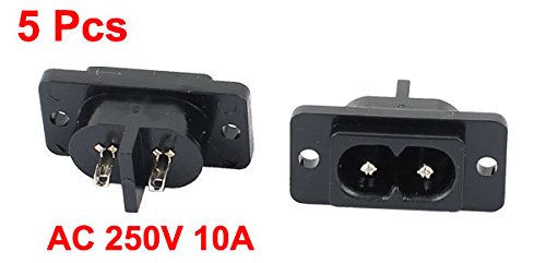 uxcell 電源インレット 2端子 C8タイプ PCBボード パネル取り付け オス AC 250V 10A 5個入り