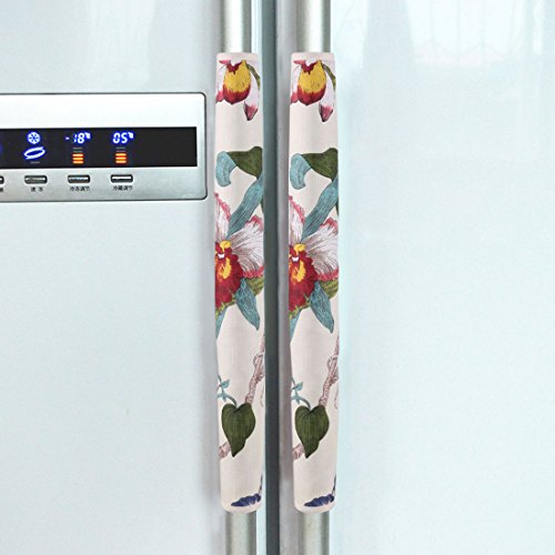 uxcell 冷蔵庫ハンドルカバー ペア 冷蔵庫ドア 花のパターン ハンドルカバー 冷蔵庫の手袋 プロテクター ベージュ