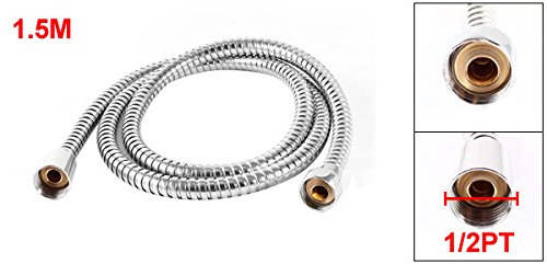uxcell シャワーホース 1.5M 1/2 PT メスネジ シルバートーン 柔らかい 組み製のシャワーホース