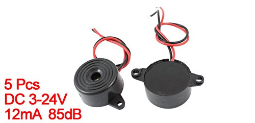 uxcell 電子ブザー アラーム DC 3-24V 85dB 連続音 2ケーブル ブラック 23x 12mm 5個
