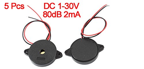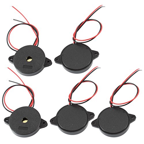 uxcell 圧電ブザー ABSハウジング DC 1-30V 黒赤2線付き アラームブザー 5個入り