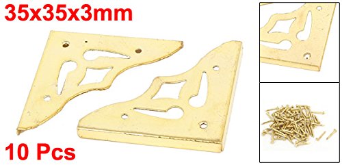 uxcell ボックスコーナープロテクター レトロスタイル 三角形 ゴールドトーン 金属 28g 10個入り