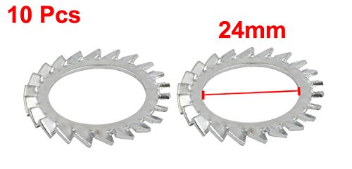uxcell ロックワッシャー 24mm内径 炭素鋼 亜鉛メッキ 外部鋸歯状 10個入り