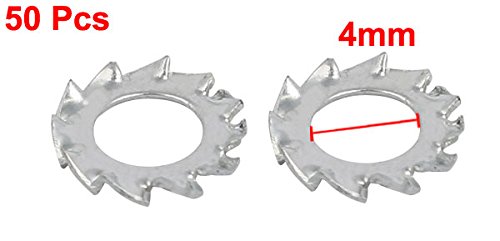 uxcell ロックワッシャー 4mm内径 炭素鋼 亜鉛メッキ 外部鋸歯状 50個入り