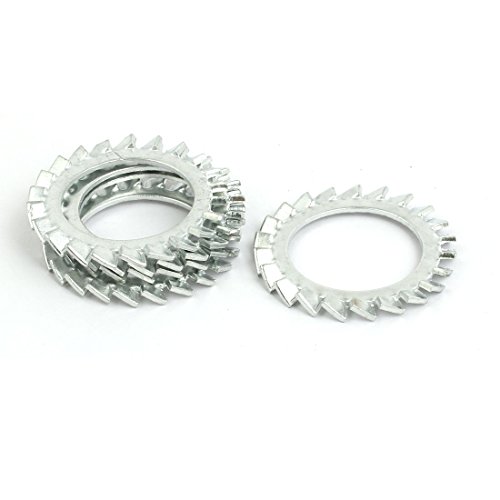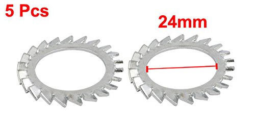 uxcell ロックワッシャー 24mm内径 炭素鋼 亜鉛メッキ 外部鋸歯状 5個入り