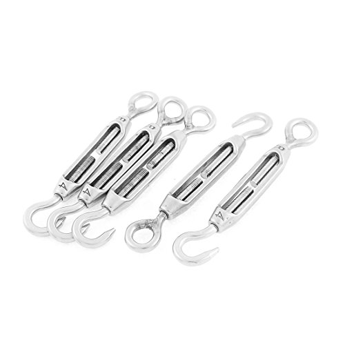 uxcell ターンバックル ロープボタン フックアイ シルバートーン ステンレス鋼 5個