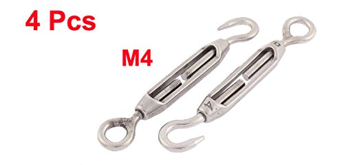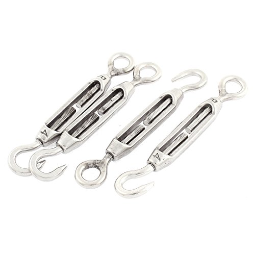 uxcell ターンバックル ロープボタン フックアイ シルバートーン ステンレス鋼 4個