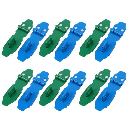 uxcell 12セット 掛け金ステープルハードウェアセット トランクフック カップボードドア グリーンブルー メタルラッチ 56mm