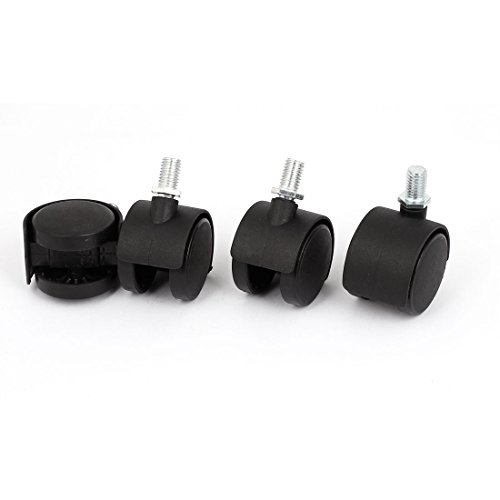 uxcell ネジ切りステムキャスターホイール 椅子スイベルキャスター 4個入り ブラック シルバートーン プラスチック 金属 360度回転可能