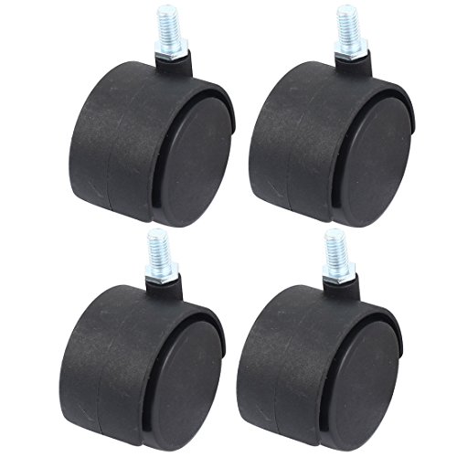 uxcell キャスターホイール プラスチック 金属 ブラック シルバートーン 8mm ねじステム 4個入り
