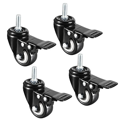 uxcell プレット式キャスター ミディアムキャスター スイベル キャスターホイール PU ねじ切りステム ホイール ブレーキ付き M8 x 25mm 46cm 4個入り