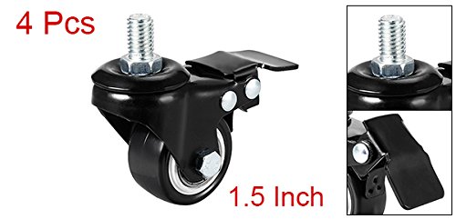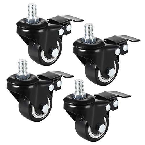 uxcell プレット式キャスター ミディアムキャスター スイベル キャスターホイール PU ねじ切りステム ブレーキ付き 110lbの容量 46cm 4個入り