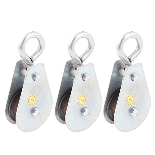 uxcell シングルロープ滑車 回り継ぎ手フック 100kg 荷重 シルバートーン 3 枚入り