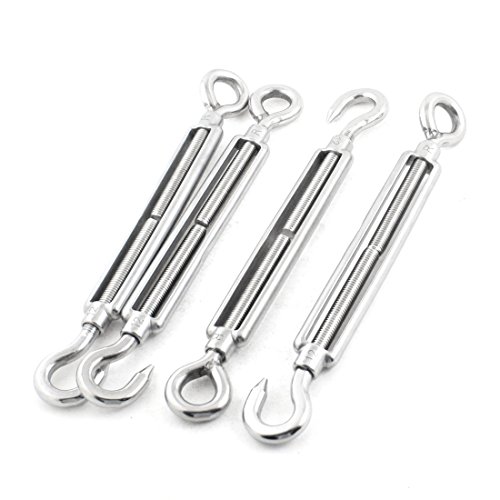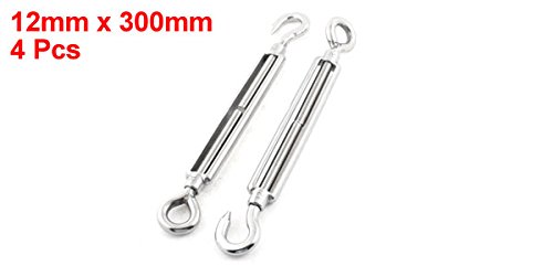 uxcell 4本 マリン ハードウェア 12mm スレッド 300mm 長さ フック アイ ターンバックル