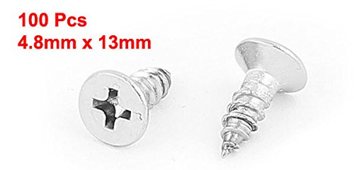 uxcell セルフタッピングねじ ファスナー シルバートーン 4.8mm x 13mm フラットヘッド 100個入り