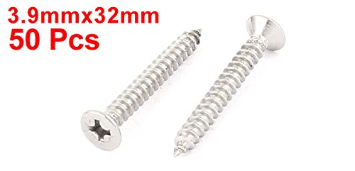 uxcell フィリップス セルフタッピングねじ ステンレス鋼 3.9mm x 32mm フラットヘッド 50個入り