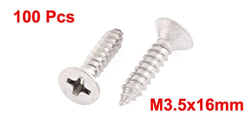 uxcell 3.5mmx16mm ステンレス鋼 フィラメント フラット ヘッド シート セルフ タッピング ネジ 100個入り