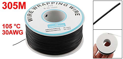 uxcell ラッピングワイヤー 錫 メッキ 銅線 ケーブル リール ブラック 305M