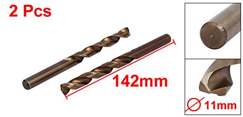 uxcell ツイスト ドリル ビット 11mm ドリル直径 142mm長さ M35 HSS ラウンド シャンク 2フルート 2本いり