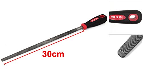 uxcell 円形ヤスリ ラウンドファイル プラスチックカバーハンドル グレー 炭素鋼 ファイリングツール