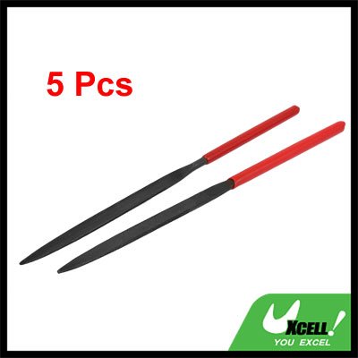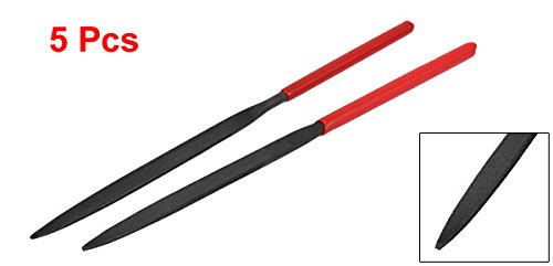 uxcell ヤスリセット 赤いプラスチックコートハンドル フラットポイント ツール 160mm長さ 5本入り